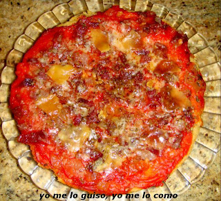 En una sartén con un poco de aceite añadir el preparado, cocinar a fuego lento hasta que este cuajada (yo le di la vuelta como a una tortilla) extender el tomate, jamón, queso y orégano (yo la hice así cada uno le pone los ingredientes que mas os gusten) tapar y dejar que se haga a fuego lento durante 10 ó 15 minutos