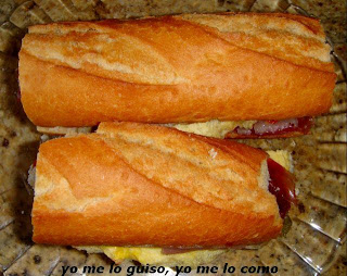 Cortar la baguette por la mitad tostar y montar, primero el lomo, tortilla, pimiento, queso y jamón y a comer bien calentito.