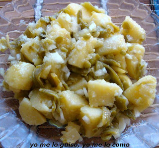 Cocer con agua o al vapor las patatas y las judías peladas y en trozos con sal.