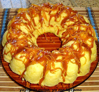 Terminar de hacer el caramelo, cubrir la superficie del bizcocho y espolvorear con la piel de naranja.