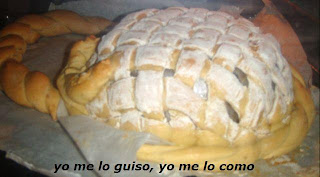 Poner en la bandeja de horno dándole la forma del diámetro de la cesta pintar con huevo y hornee hasta que se dore.