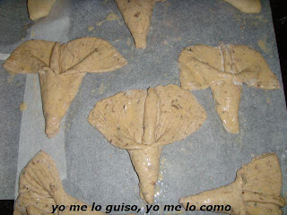 Hacer un corte en la parte central hasta la mitad y otro corte en un extremo casi hasta el final. (Perdonar que no sacase fotos pero estaba llena de harina)