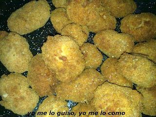 Hacer bolas con forma de huevo pasarlas por pan rallado y freír en abúndate aceite, sacar a una olla o sartén grande y reservar.
