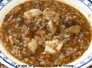 tanto limpiar los champiñones (yo le puse gurumelos que tenía congelados). Y